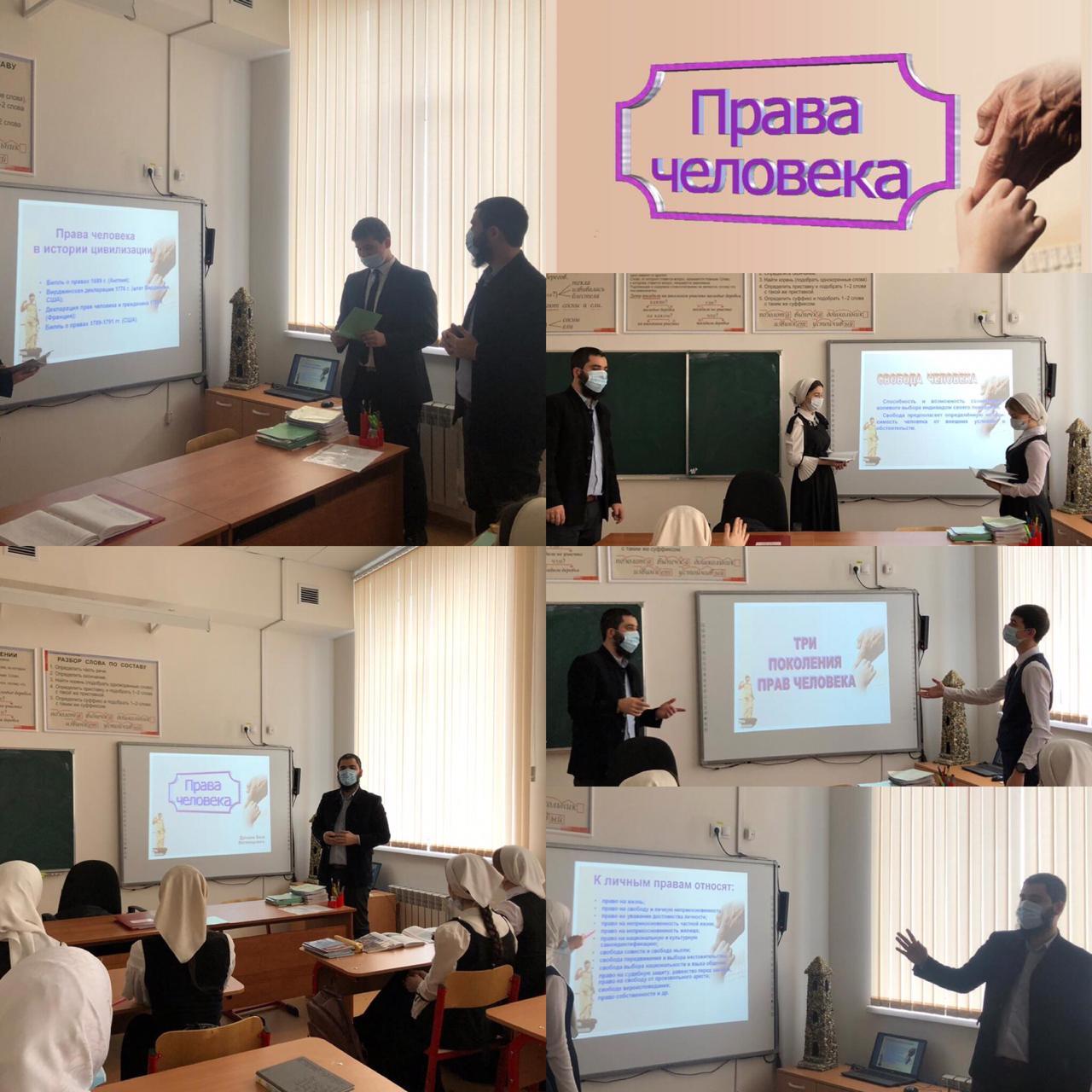 МБОУ «ЦО г.Аргун имени Первого Президента ЧР, Героя России Ахмата-Хаджи Кадырова» приняла участие во Всероссийской образовательной акции Единый урок «Права человека». Урок провёл учитель обществознания Дускаев В.Ю
