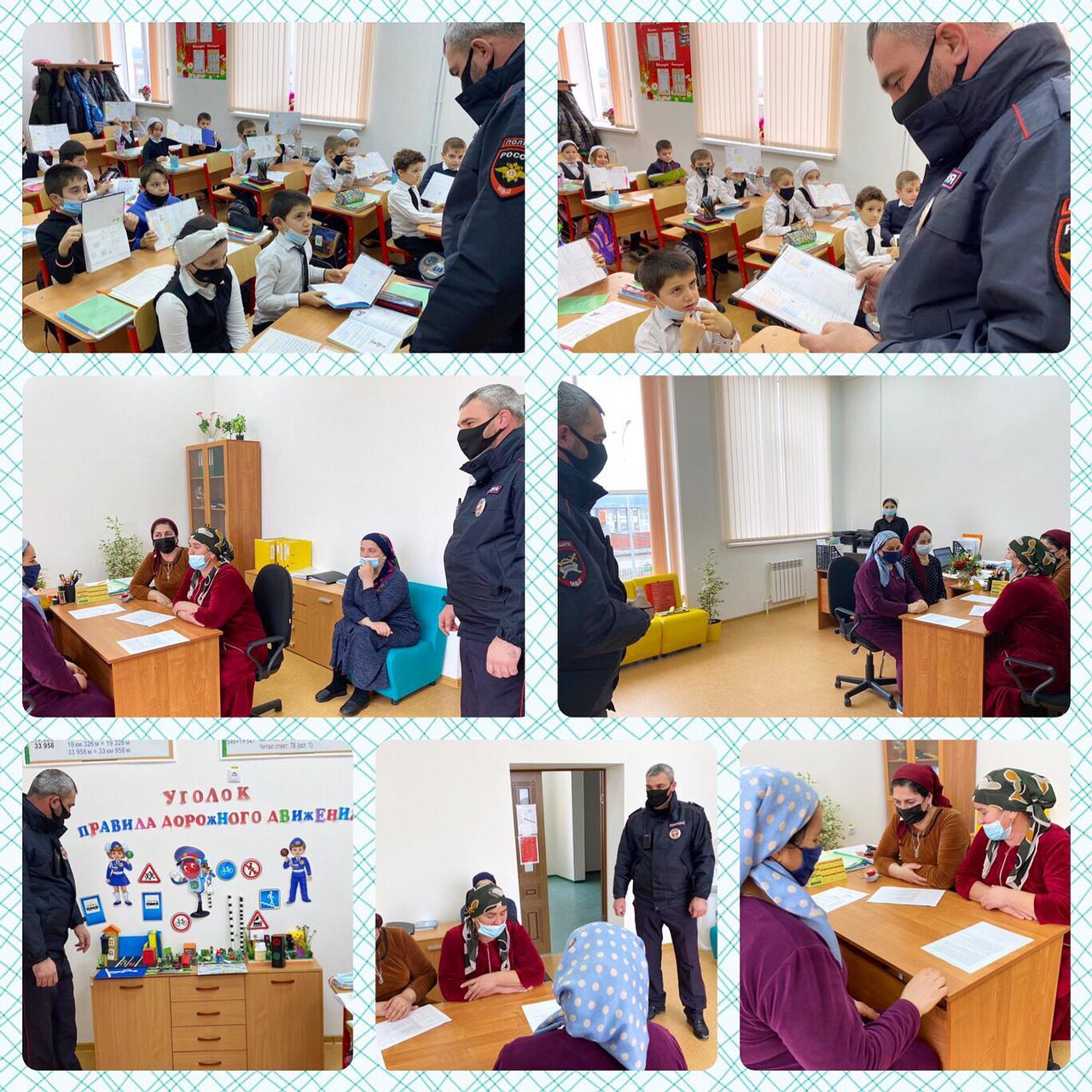 В целях профилактики детского дорожно-транспортного травматизма, сотрудник БДД ОГИБДД ОМВД России по г.Аргун провел беседу о правилах поведения на дорогах, а также проверил наличие безопасного маршрута у детей «Дом – школа – дом ». Ребята еще раз вспомнили все виды пешеходных переходов.