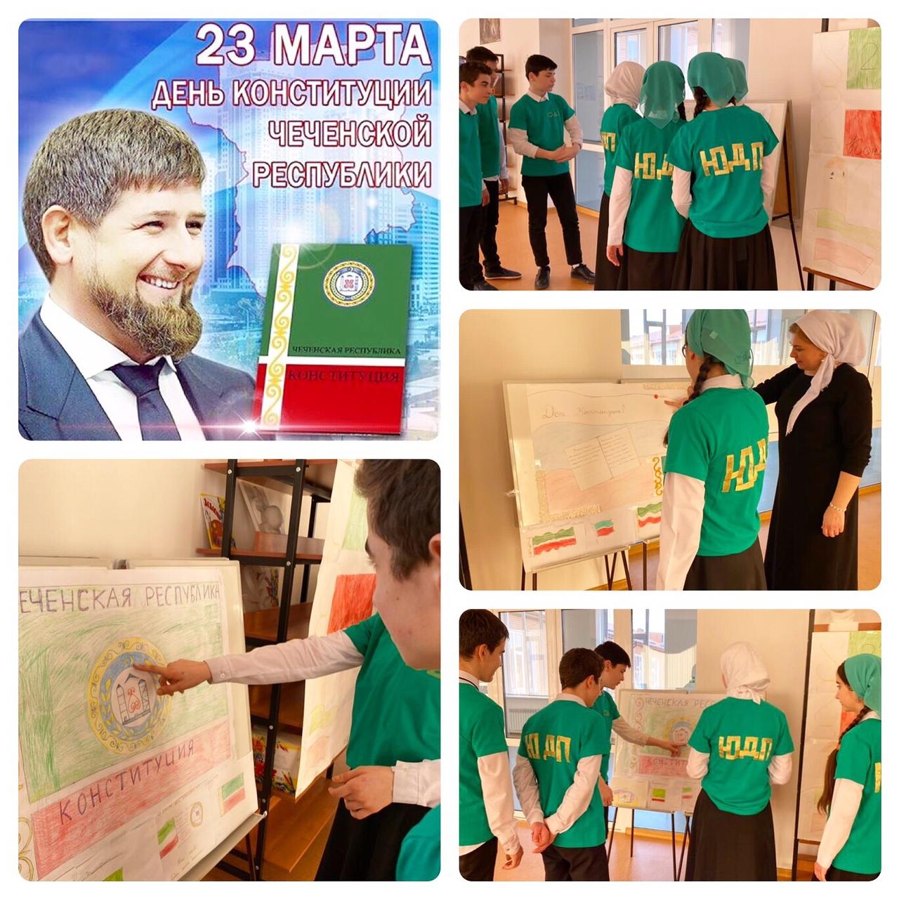 Педагог-библиотекарь, рассказала детям о том, что принятие путём всенародного голосования Основного закона явилось поворотным моментом в истории нашего народа, благодаря референдуму, инициатором проведения которого был первый Президент Чеченской Республики, Героя России Ахмат-Хаджи Кадыров, республика стала полнокровным субъектом Российской Федерации.