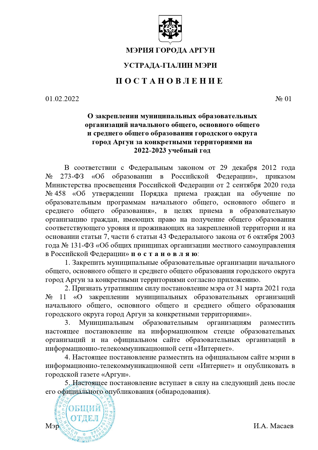 21.04.2022О закреплении муниципальных образовательныхорганизаций начального общего, основного общегои среднего общего образования городского округагород Аргун за конкретными территориями на2022-2023 учебный год