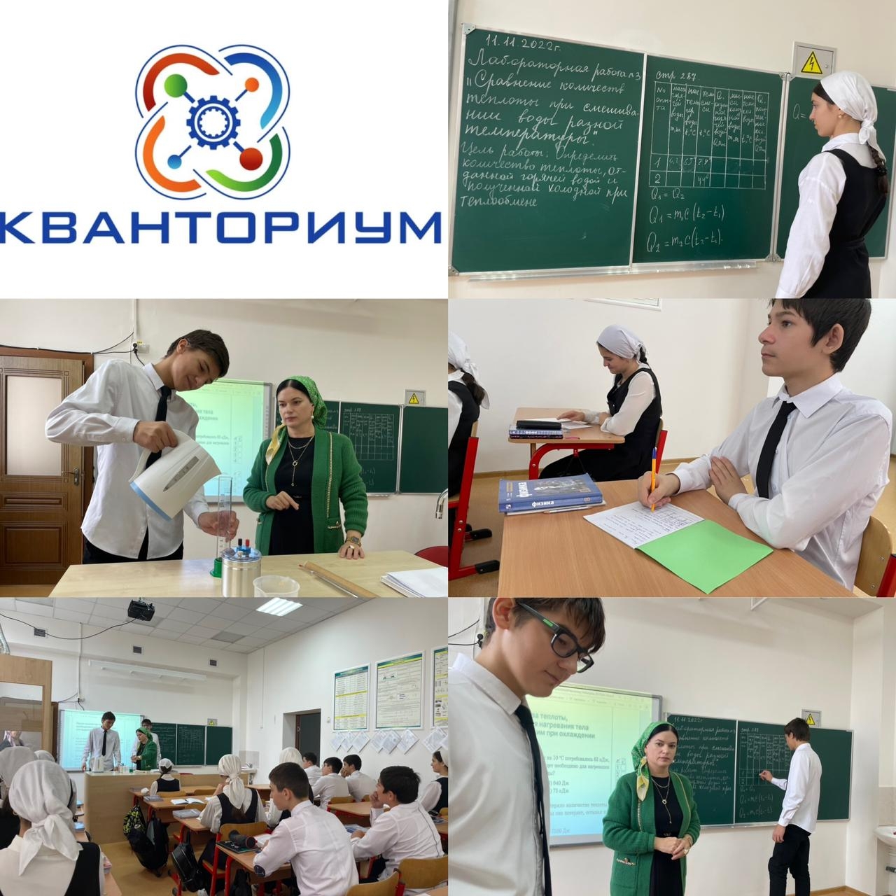 11.11.2022Лабораторная работа "Сравнение количеств теплоты при смешивании воды разной температуры". Цель работы: Определить количество теплоты, отданной горячей водой и полученной холодной при теплообмене. Работу провела педагог кружка "За страницами учебника физики" детского технопарка "Кванториум" Магомедова М А.