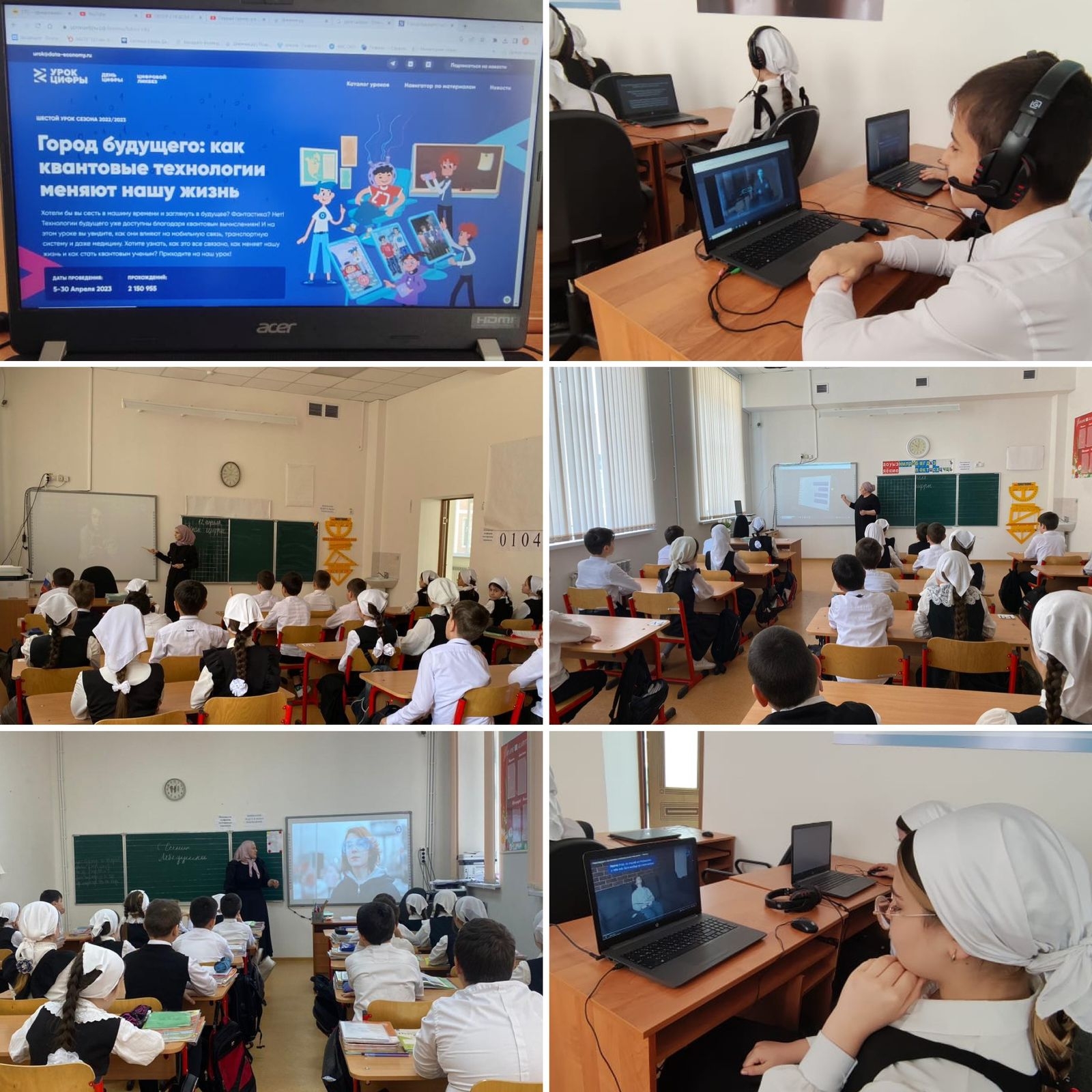 Сегодня 12.04.2023г., на Федеральном открытом «Урока цифры», в гибридном формате, участвовали учащиеся 4-7 классов МБОУ «ЦО г. Аргун им. А-Х. Кадырова». Тема урока: «Город будущего: как квантовые технологии меняют нашу жизнь».