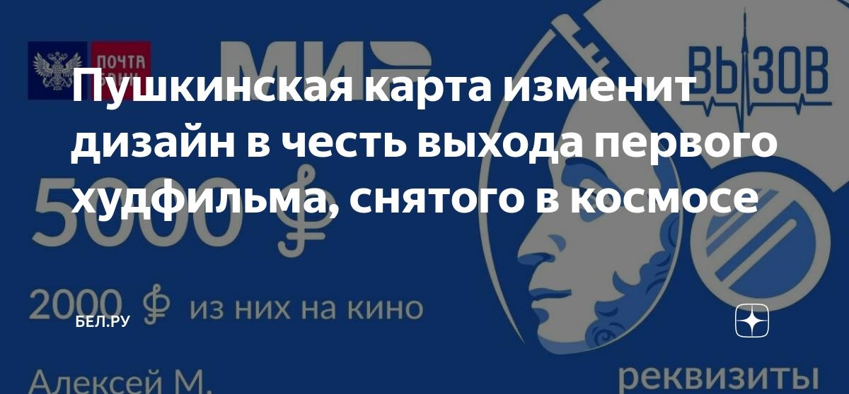 Пушкинская карта изменит дизайн по случаю выхода первого художественного фильма, снятого в космосе