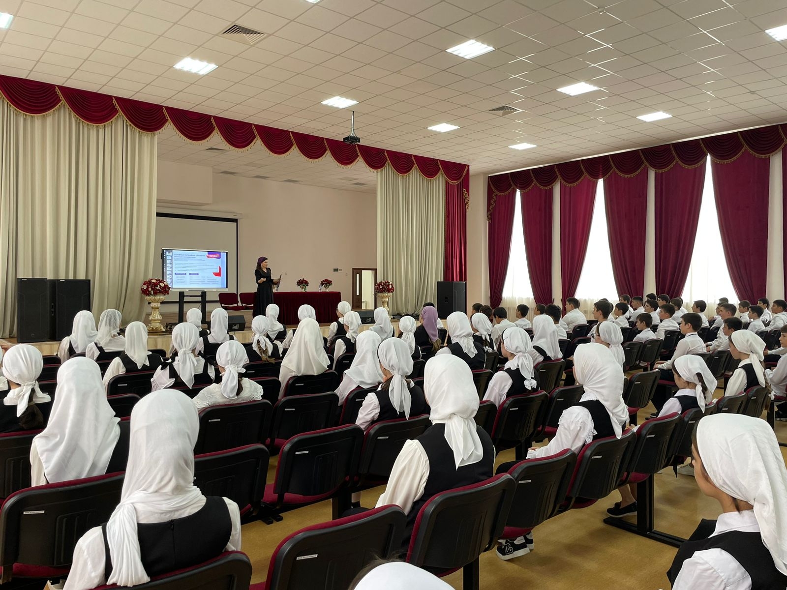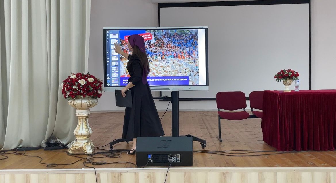 В МБОУ «ЦО г.Аргун им.А.-Х.Кадырова» советник директора по ВР Бахаева Х. организовала и провела беседу с учащимися школы на тему: «Движение первых. Будь в движении».