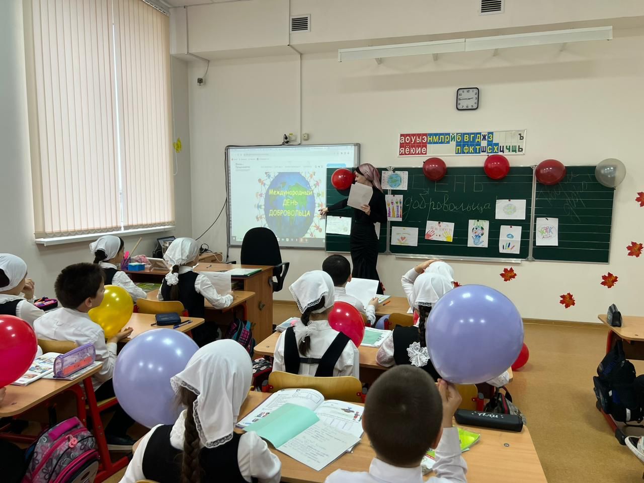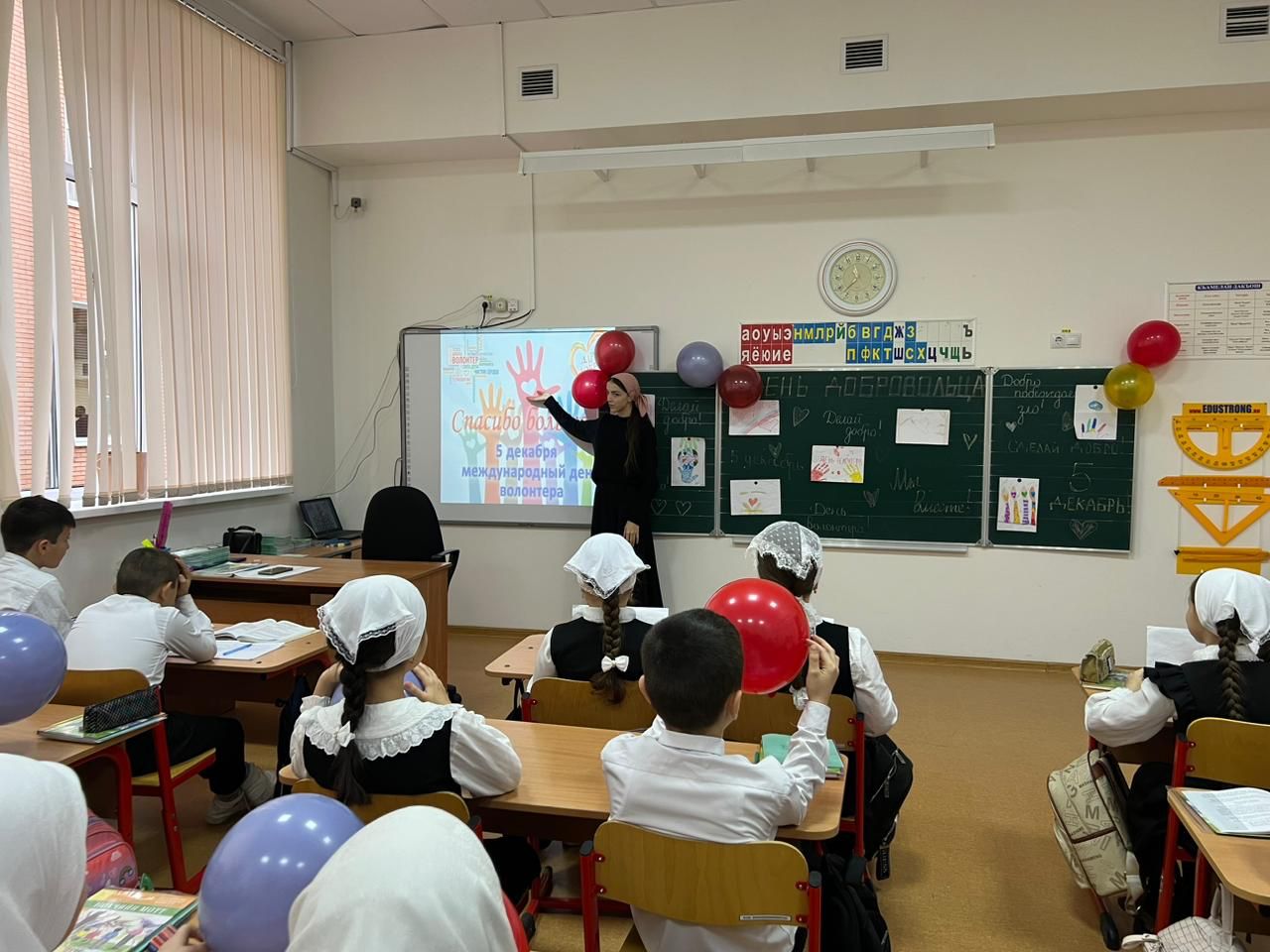 В МБОУ «ЦО г.Аргун им.А.-Х.Кадырова» советник директора по ВР Бахаева Х. совместно с классными руководителями организовали и провели открытые мероприятия, посвященные Дню волонтёра. Международный день волонтеров отмечается 5 декабря. Этот праздник нацелен привлечь внимание общественности к такому важному делу, как волонтерство — безвозмездная помощь на благо общества.