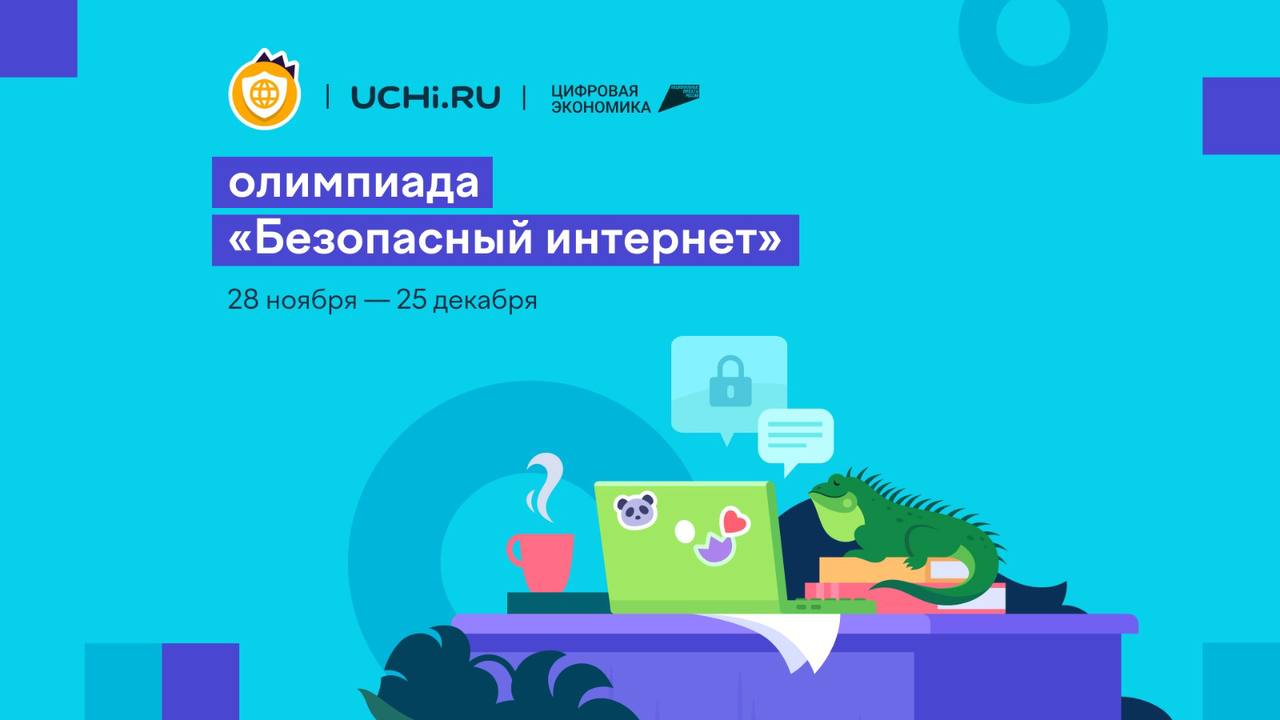 С 28 ноября по 25 декабря пройдет Всероссийская онлайн-олимпиада «Безопасный интернет», в ходе которой ученики 1-9 классов смогут проверить свою цифровую грамотность и сформировать навыки безопасного поведения в интернете. Олимпиада организована АНО «Национальные приоритеты» при поддержке национального проекта «Цифровая экономика», Министерства цифрового развития, связи и массовых коммуникаций Российской Федерации и VK и проходит на образовательной платформе Учи.ру.