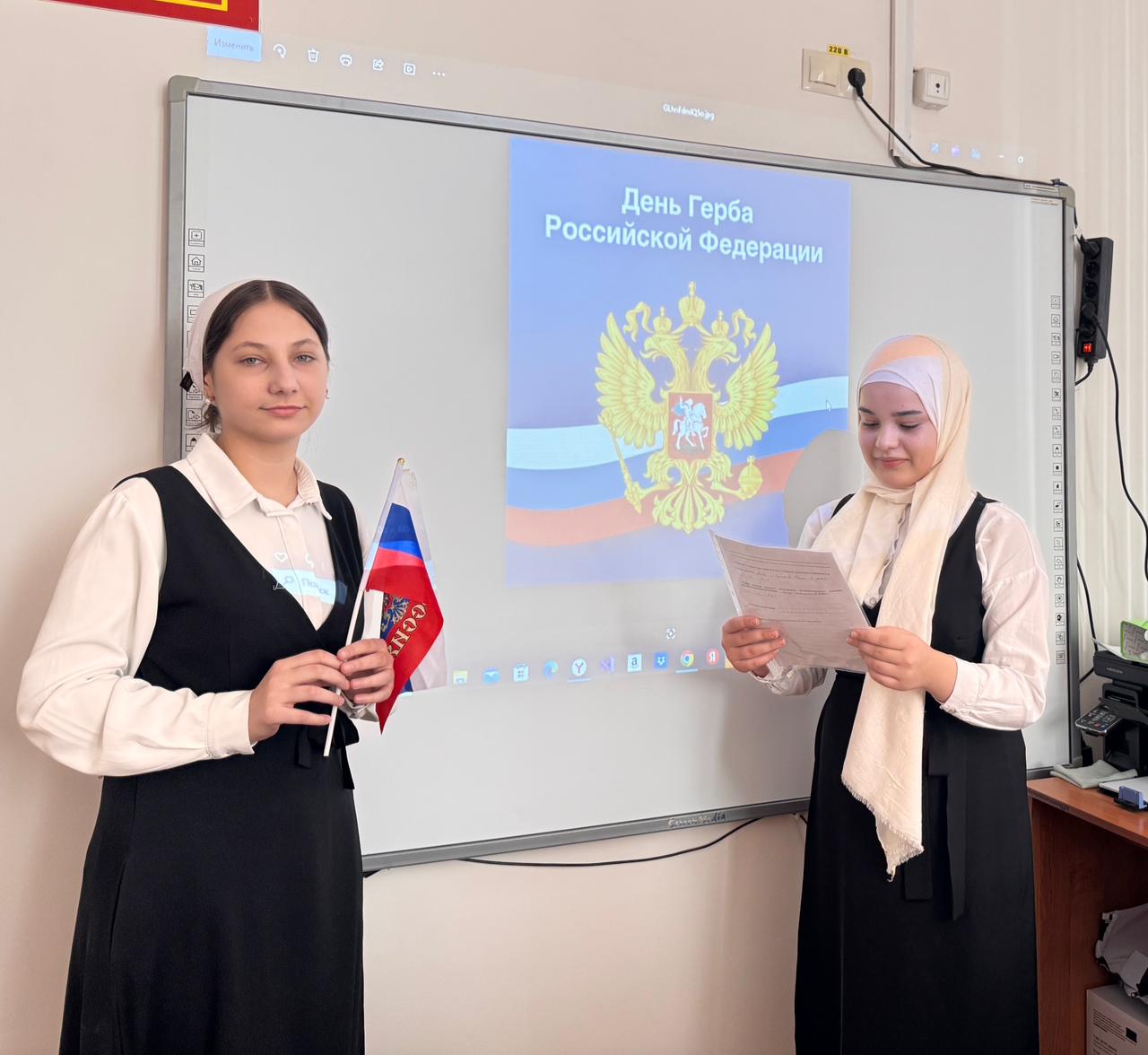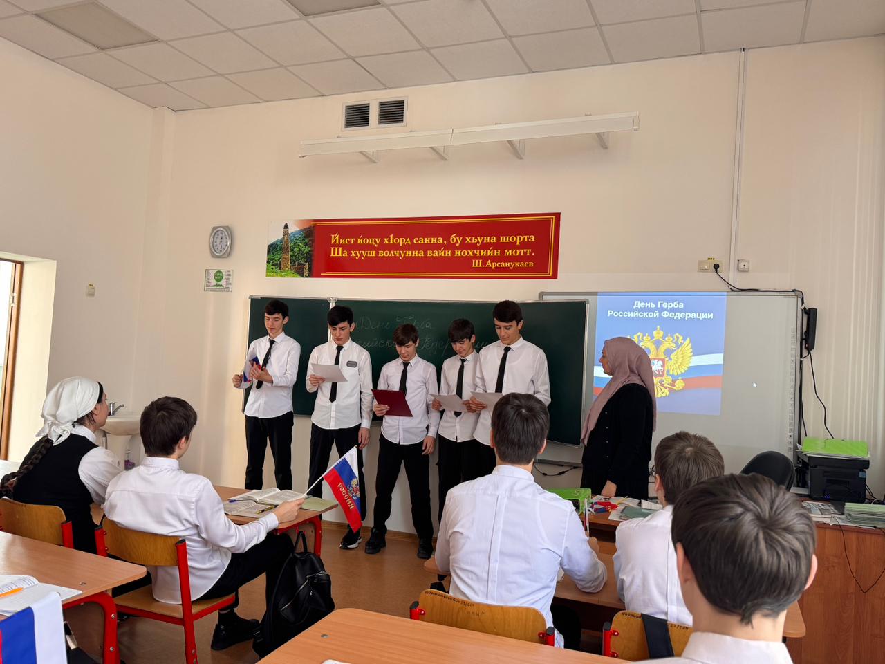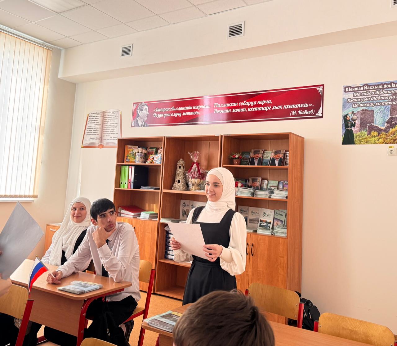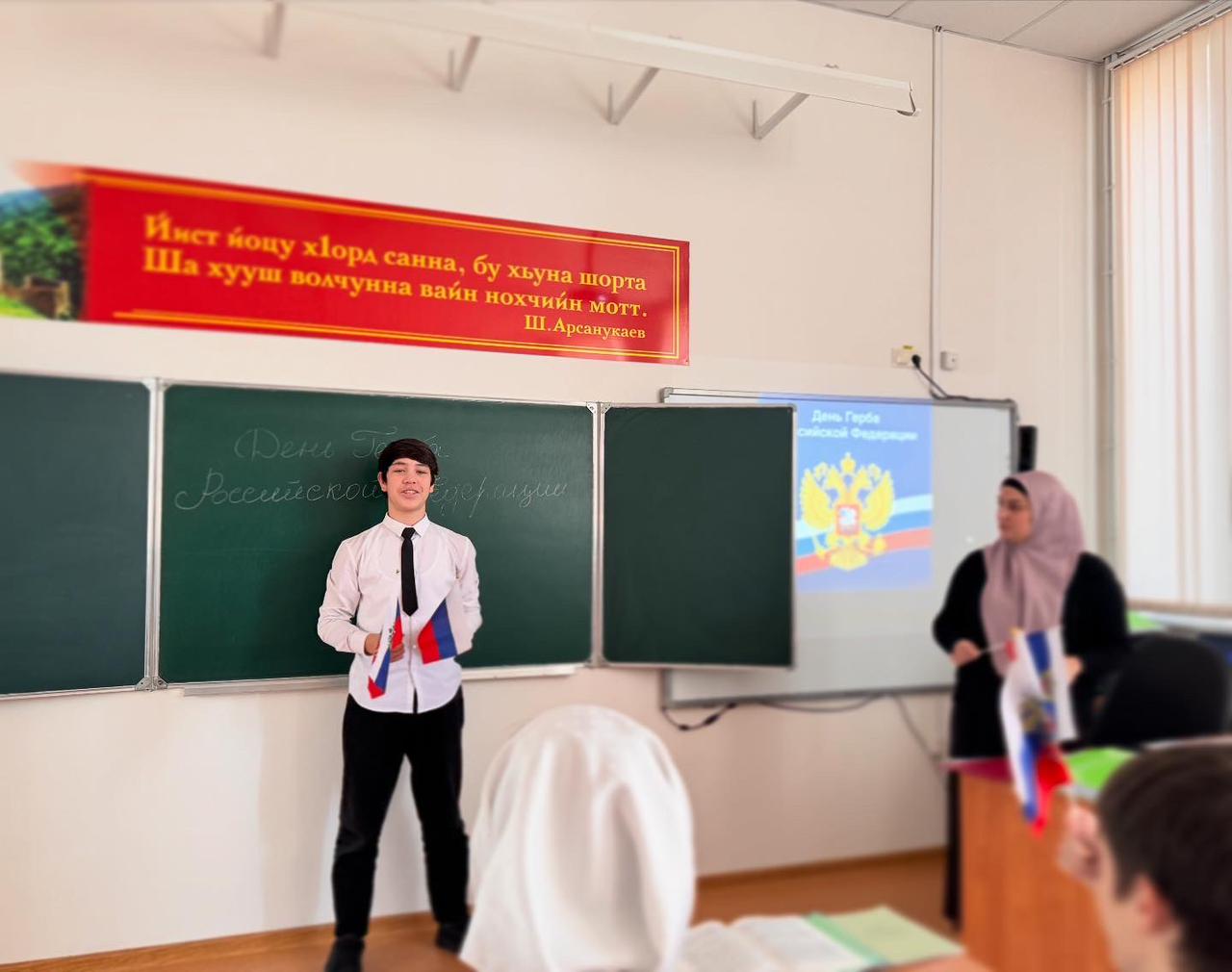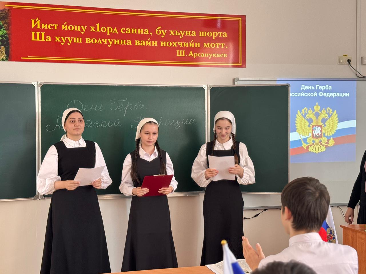 В МБОУ «ЦО г.Аргун им.А.-Х.Кадырова» советник директора по ВР Бахаева Х. совместно с классными руководителями организовала и провела мероприятие, посвященное Дню Государственного герба.