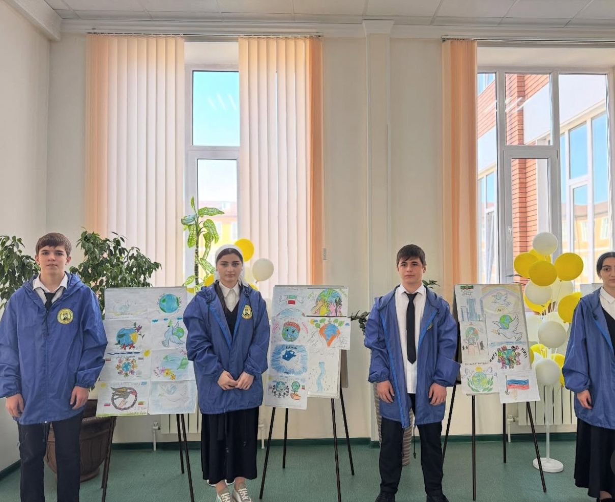 Организована выставка рисунков, посвященные дню мира в чеченской республике «мирное небо».